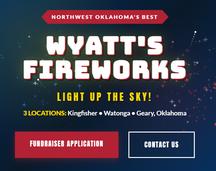 Looking for a fun, high-energy fundraiser that actually works? Partner with Wyatt's Fireworks and put your group to work at one of our 3 Northwest Oklahoma stands. Your volunteers sell fireworks, and your organization keeps a percentage of every dollar earned during your shift. No upfront costs. No inventory risk. Just pure fundraising firepower. ๐ฅ